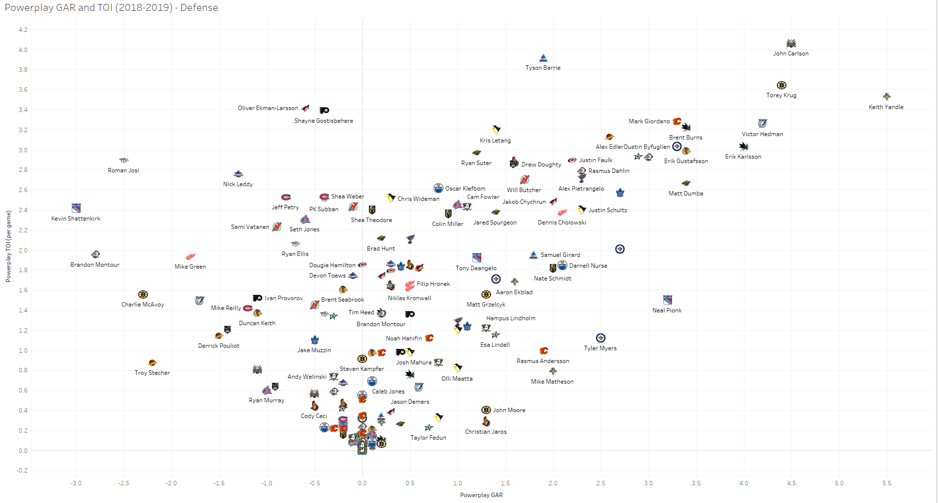 What kinds of themes can be extrapolated from these charts? There are a few defensemen that jump off the page in terms of minutes played and GAR.